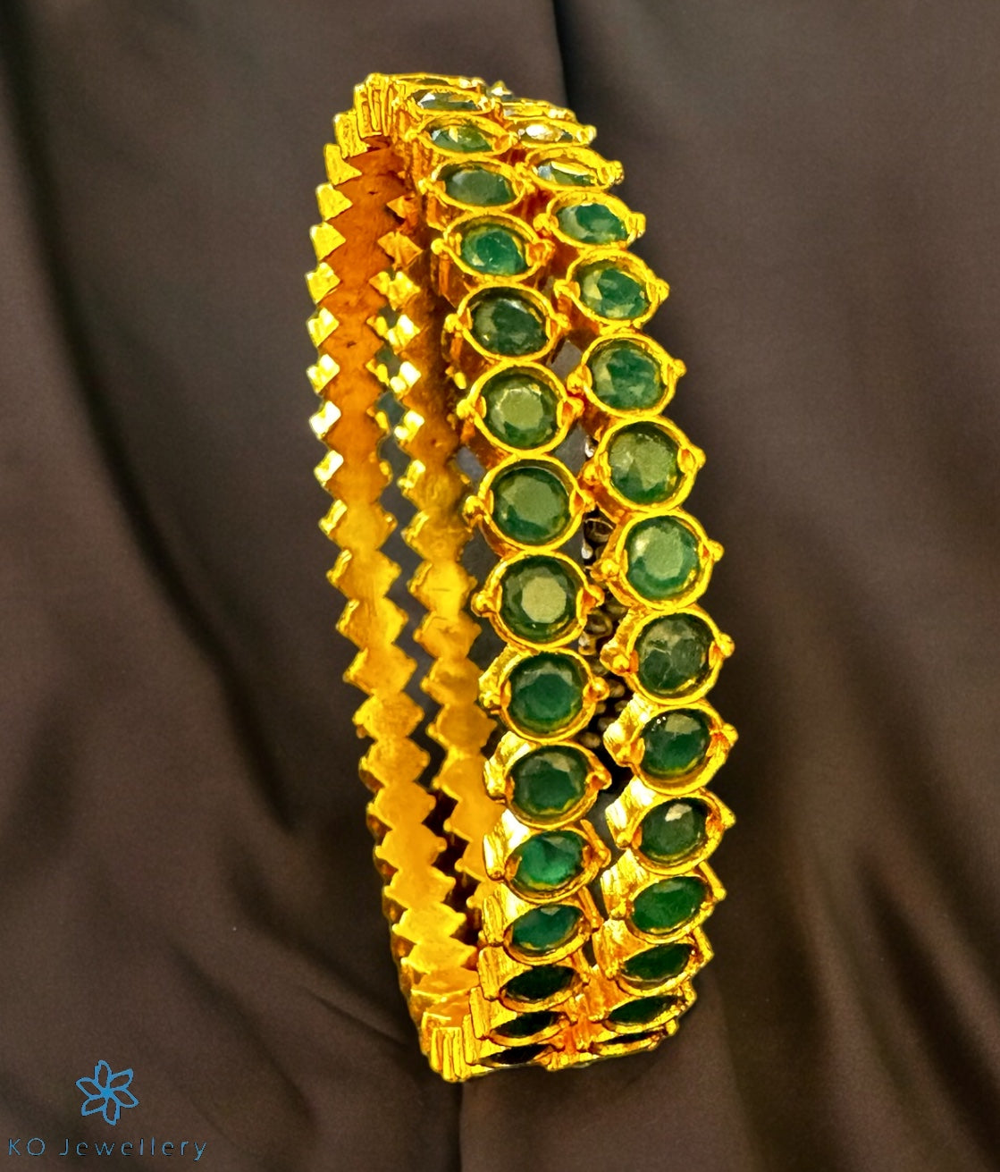 The Tanvi Silver Kemp Bangle-Single(Green/Size/2.2/2.4/2.6/2.8)