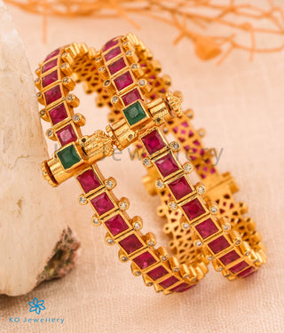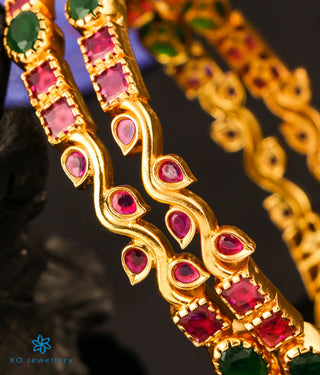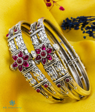 The Isha Antique Silver Golusu Bangle(Red/Green/Size 2.2/2.4/2.6/2.8)
