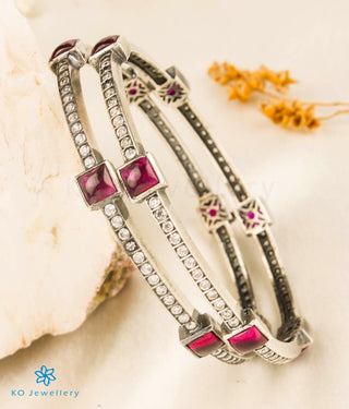 The Aikya Silver Kemp Bangle- Single (Red/Size 2.2/2.4/2.6/2.8)