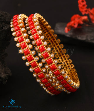 The Rajanya Silver Coral &Pearl Bangle (Size 2.2/2.4/2.6/2.8)