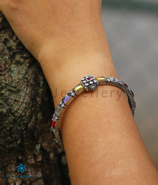 The Sampada Silver Navaratna Bracelet-Single (Size /2.2/2.4/2.6/2.8)