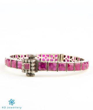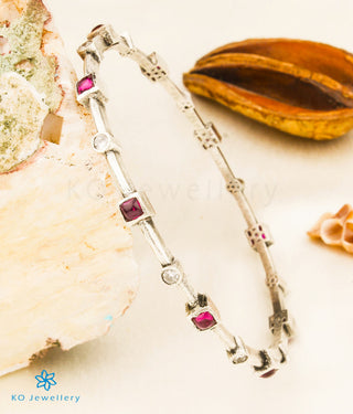 The Sampada Silver Kemp Bracelet (Red/Oxidised/Size 2.2/2.4/2.6/2.8)
