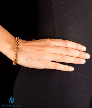 The Sampada Silver Kemp Bracelet (Red/Green/Size 2.2/2.4/2.6)