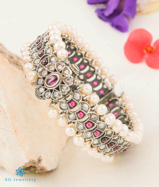 The Agraja Silver Pearl Bracelet (Oxidised/Size/2.2/2.4/2.6/2.8)