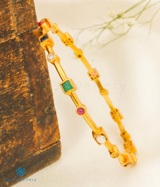 The Ridha Silver Navratna Bangle-Single (Size 2.2/2.4/2.6/2.8)