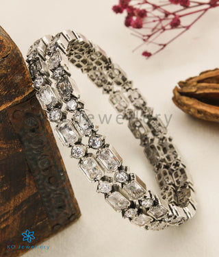 The Harini Silver Kemp Bracelet (Green/Oxidised/Size 2.2/2.4/2.6/2.8)