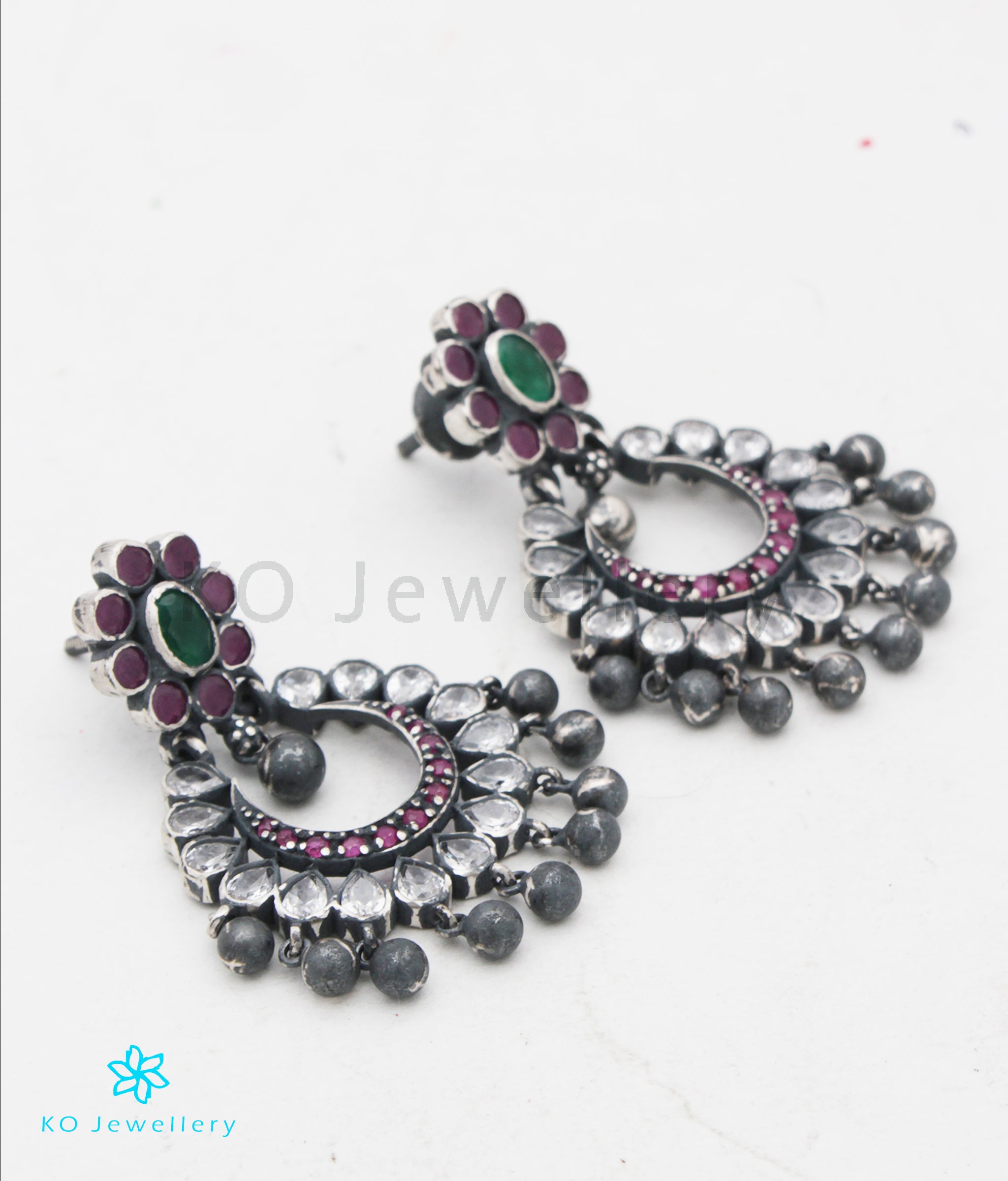 The Padmavat Silver Chand Bali Earrings (White/Oxidised)