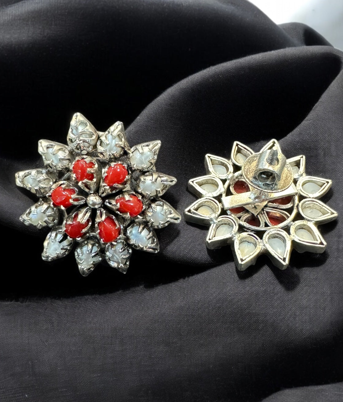 The Sayami Silver Coral & Pearl Ear-studs-Buy Silver Earrings Jewellery Online - KO Jewellery