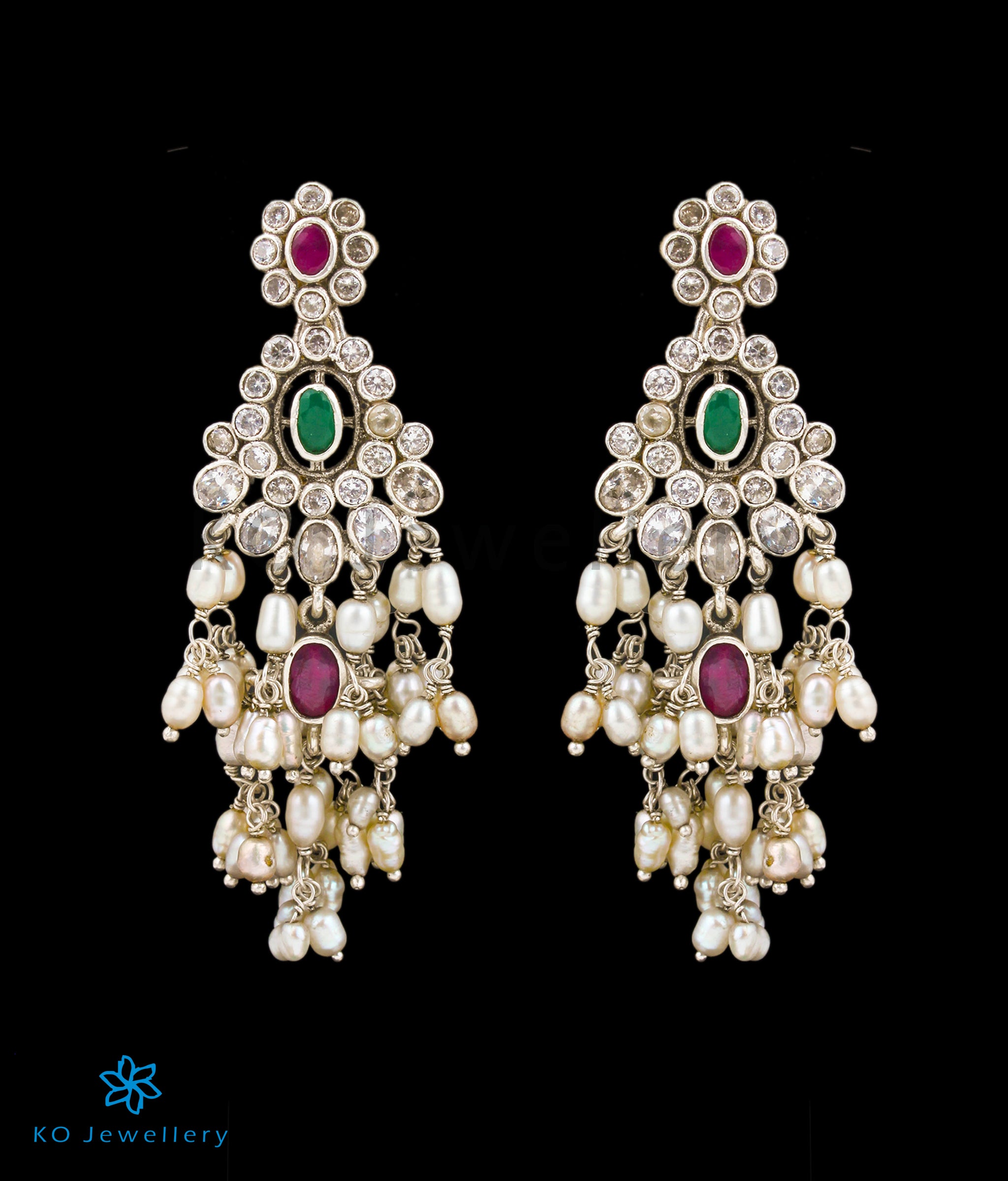 The Tarini Silver Pearl Earrings- Buy authentic Temple Jewellery Online - KO Jewellery