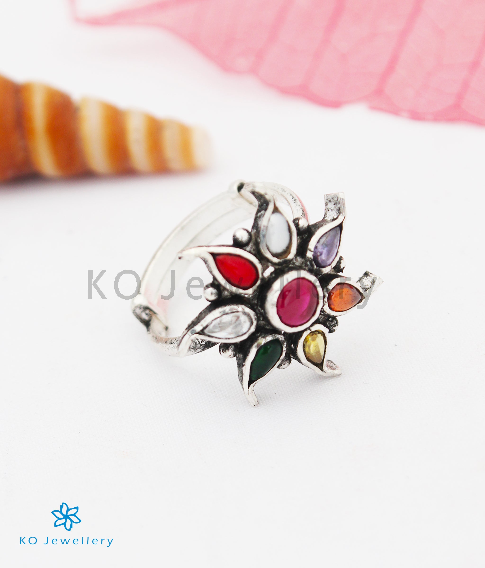 The Pauspa Silver Navratna Finger Ring (Oxidised)