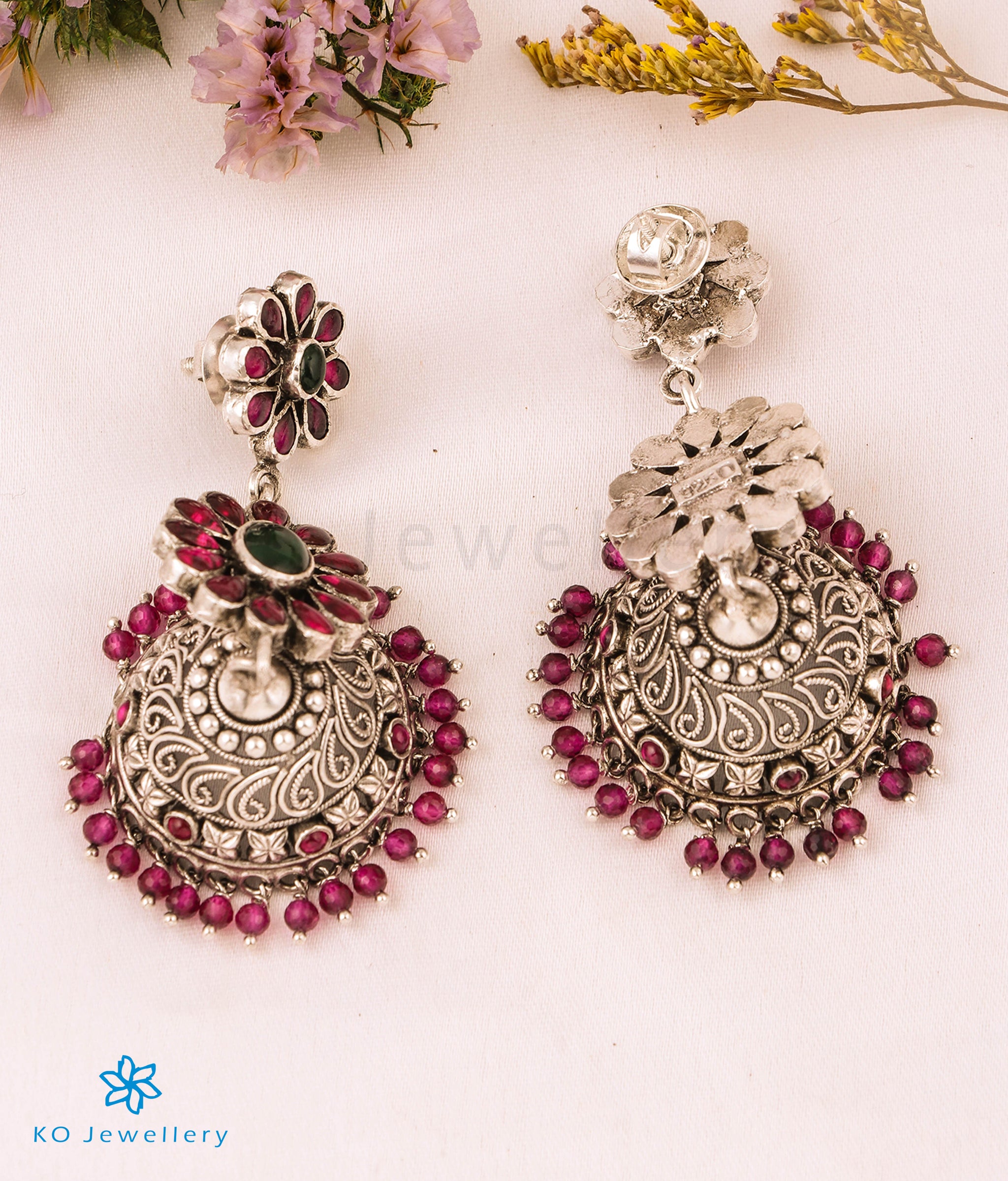 The Nila Silver Kemp Jhumkas(Red/Oxidised)