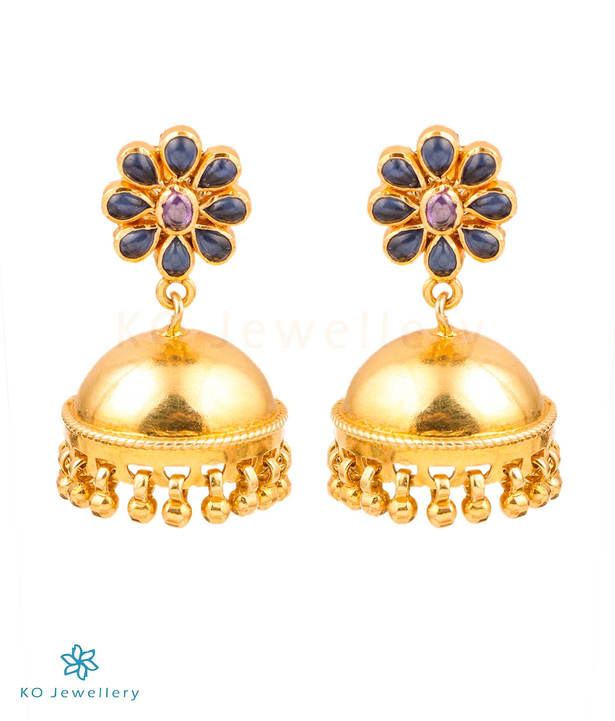 This is an exquisite pair of jhumkas that have been finely crafted using the South Indian temple gold jewellery techniques. Handcrafted from Sterling Silver (92.5%) and gold-dipped , pair it with a traditional dress to stand out from the crowd.