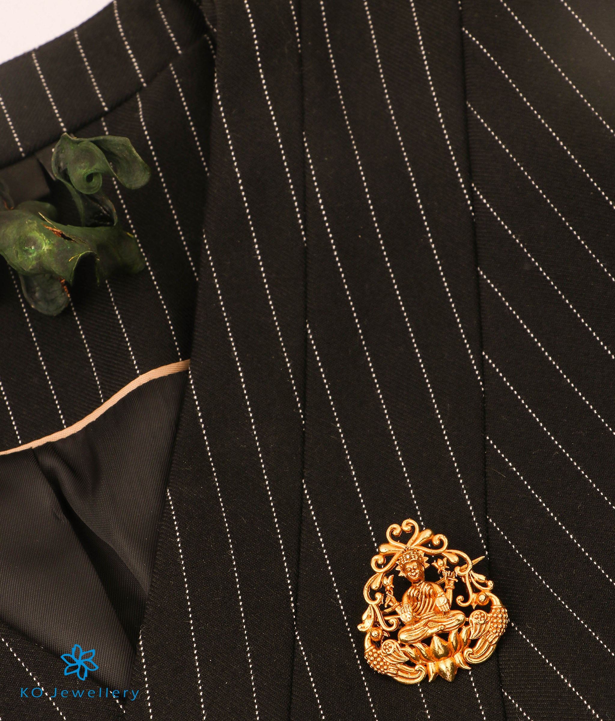 Make a bold fashion statement and draw the right attention with this gorgeous & royal Lakshmi design Sterling silver (92.5%) brooch . It is crafted with a flawless finish and a pin at the back with a safety-lock and it also has a hook so that it can be used as a pendant. This is a unisex piece of jewellery that can be used by both men and women. Wear it on a shirt , suit or a saree this is one versatile design.
