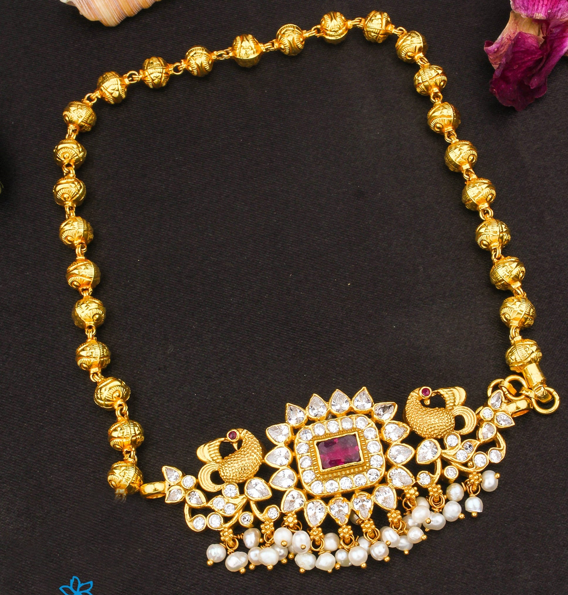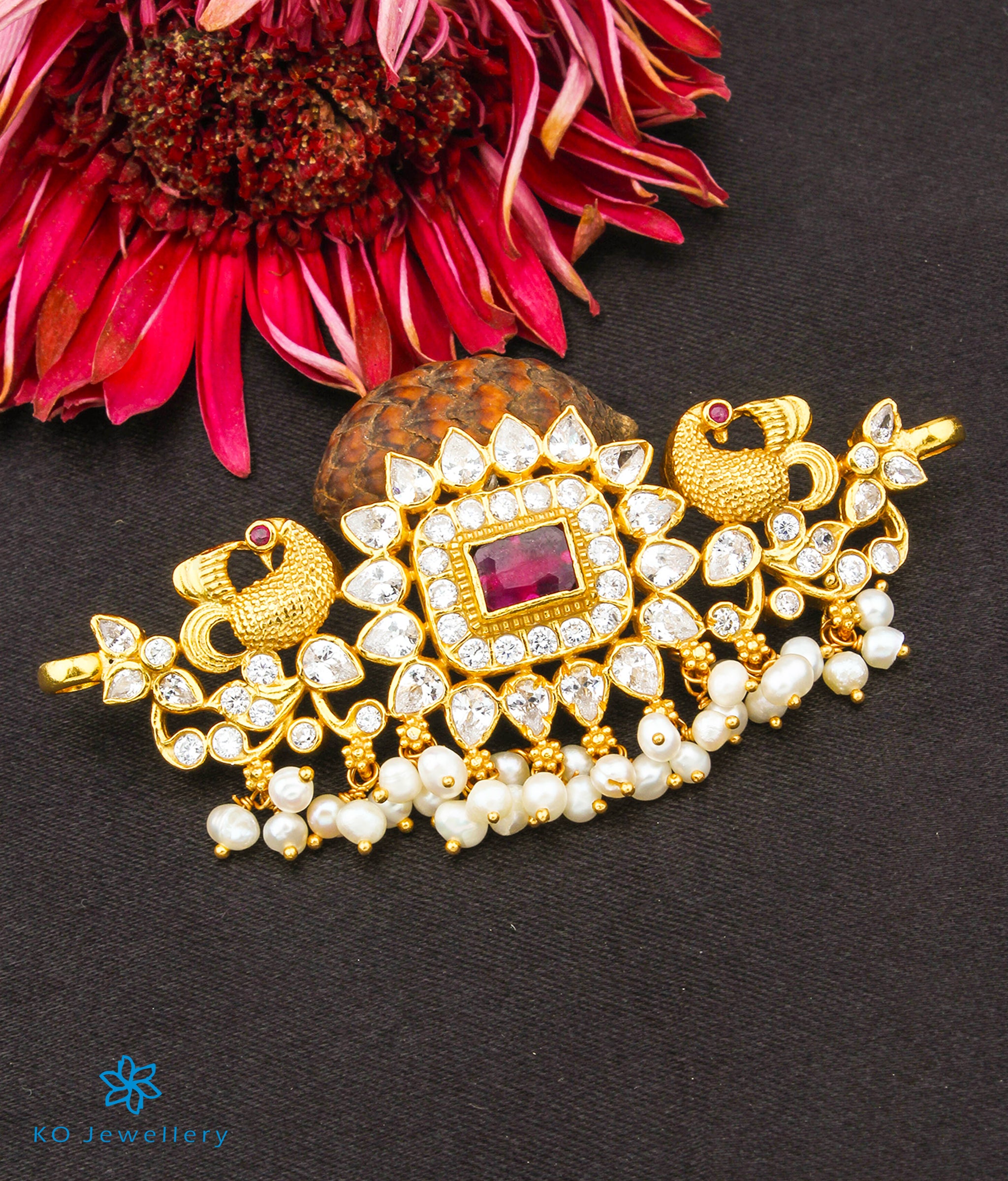 Gemstones used: Natural Pearl , Kempu Stone , AAA+ Quality Cubic Zircon