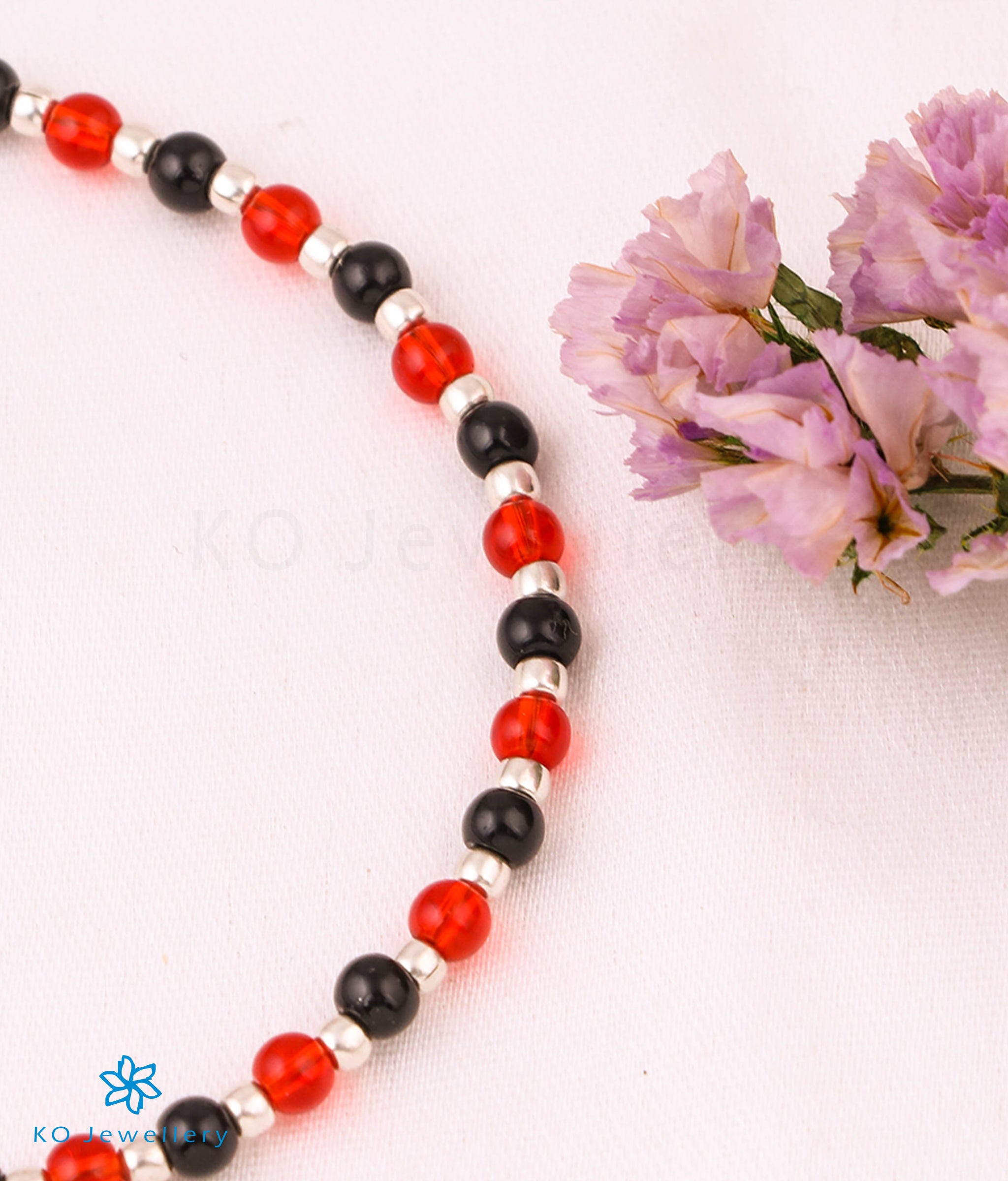 This is a versatile design in Sterling Silver (92.5%) that can be used as either anklets or bracelets according to your choice. This pair is adorned with black , red and silver beads and comes with pure silver clasps. Handcrafted to perfection, these anklets pack the miraculous child-friendly properties of pure silver and black beads are thought to have protective properties and repel negative energy .