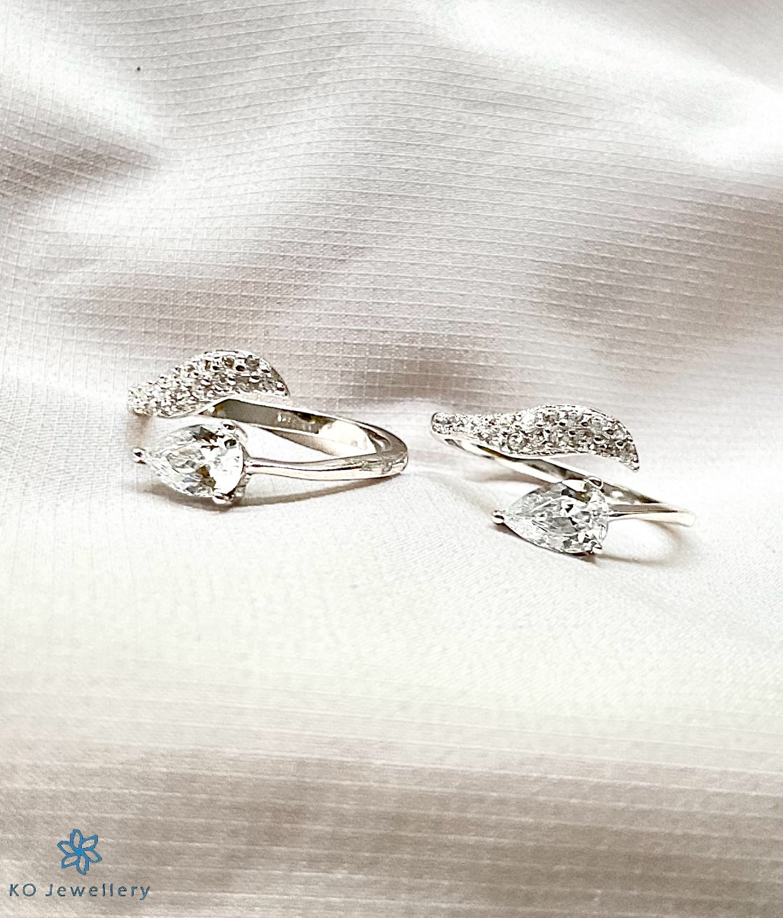 A gorgeous pair of sterling silver (92.5%) toe-rings set with high quality cubic Zirconia in a flawless design . The Rhodium e-coat finish makes them more attractive. The silver band at the front is an open one and can be adjusted according to your toe-size.The price given is for a pair of toerings (2 pieces).