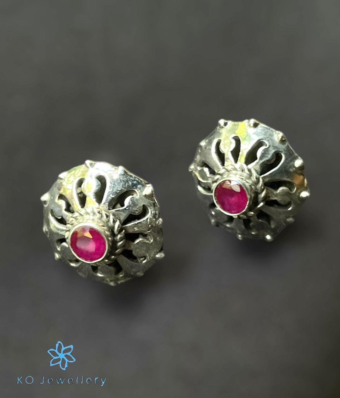 The Soma Silver Gemstone Earstuds (Red)