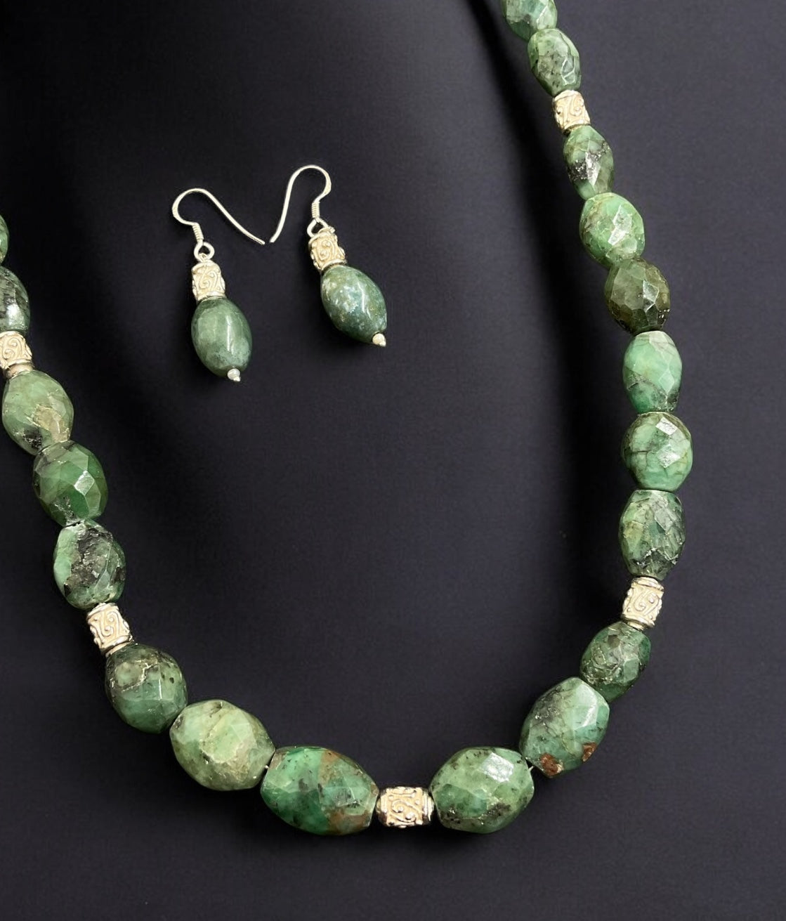 The thoughtful combination of Green Agate and sterling silver creates a timeless, versatile design that can effortlessly elevate any outfit. Paired with matching earrings, this set makes a stunning statement, ideal for both casual wear and special occasions.