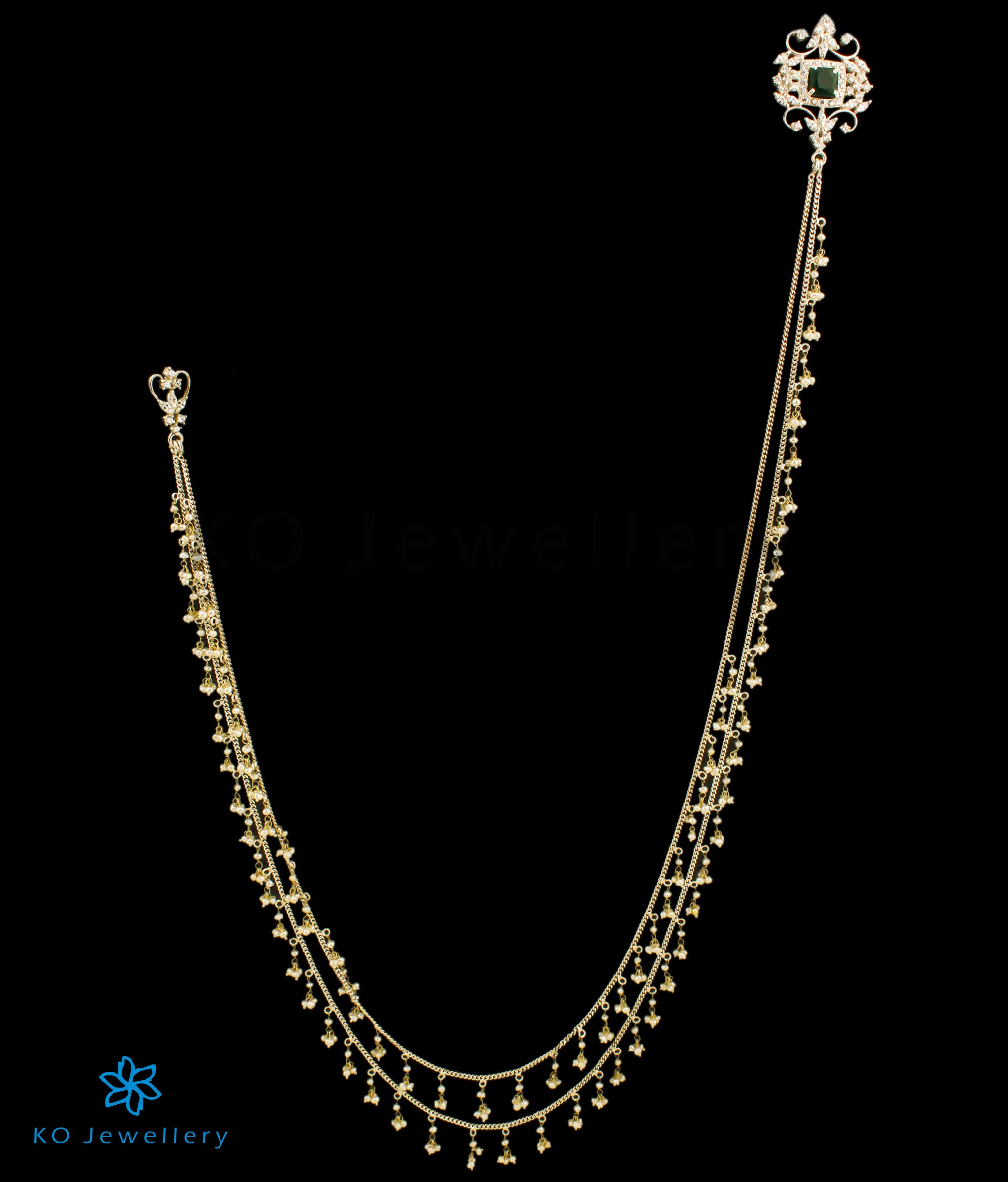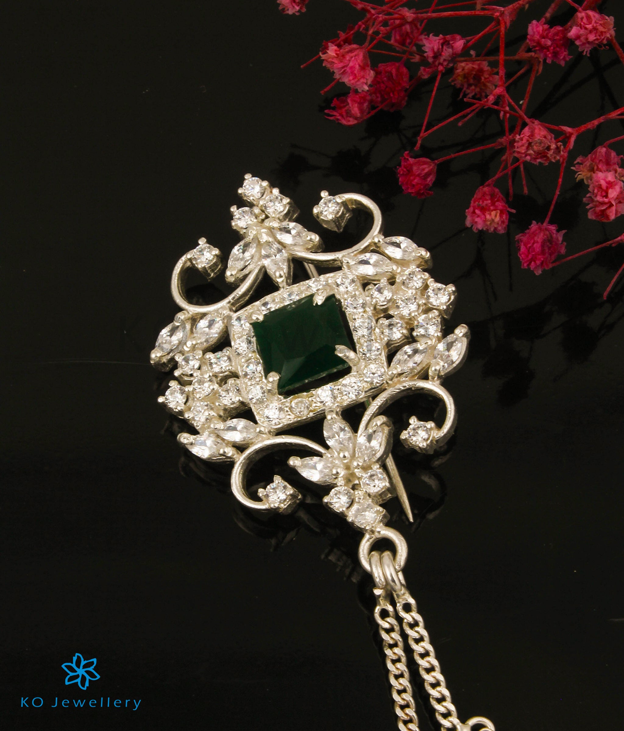 The Yuvraj Silver Pearl Brooch (Green/Bright Silver)