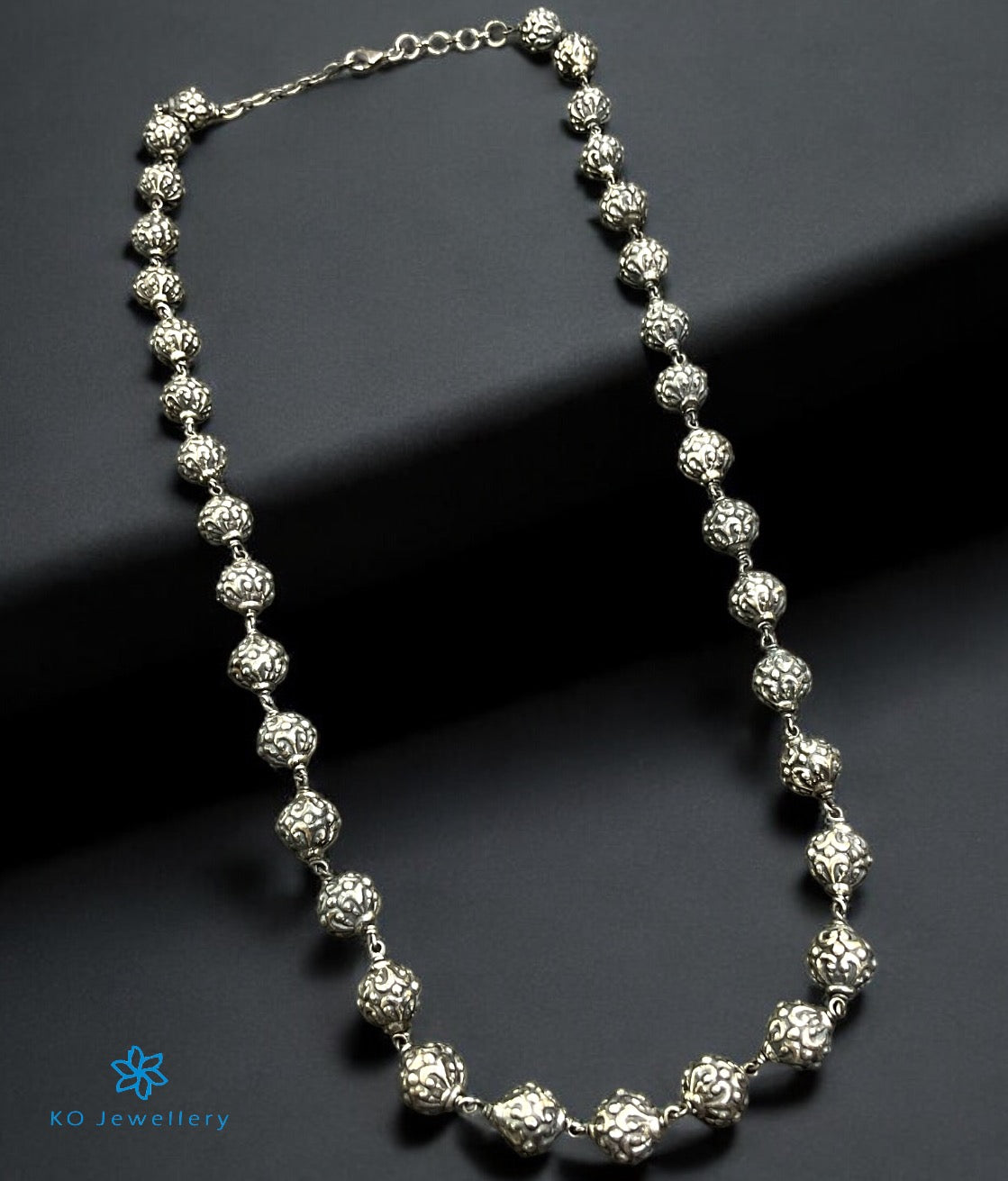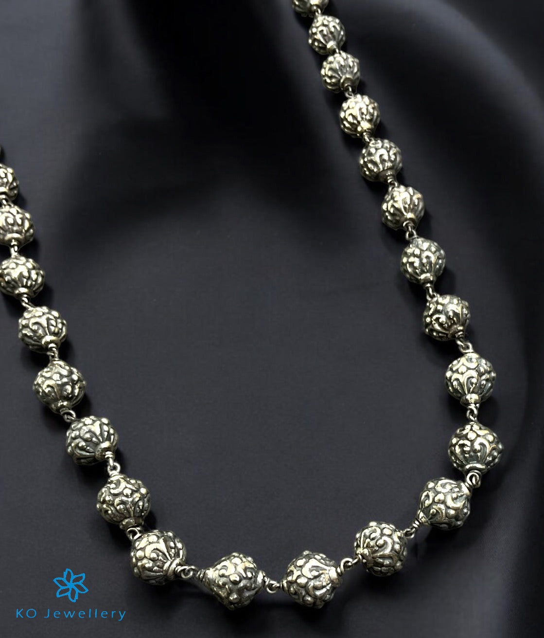 The Rudraksha Nakkasi Beads Silver Chain (Oxidised)