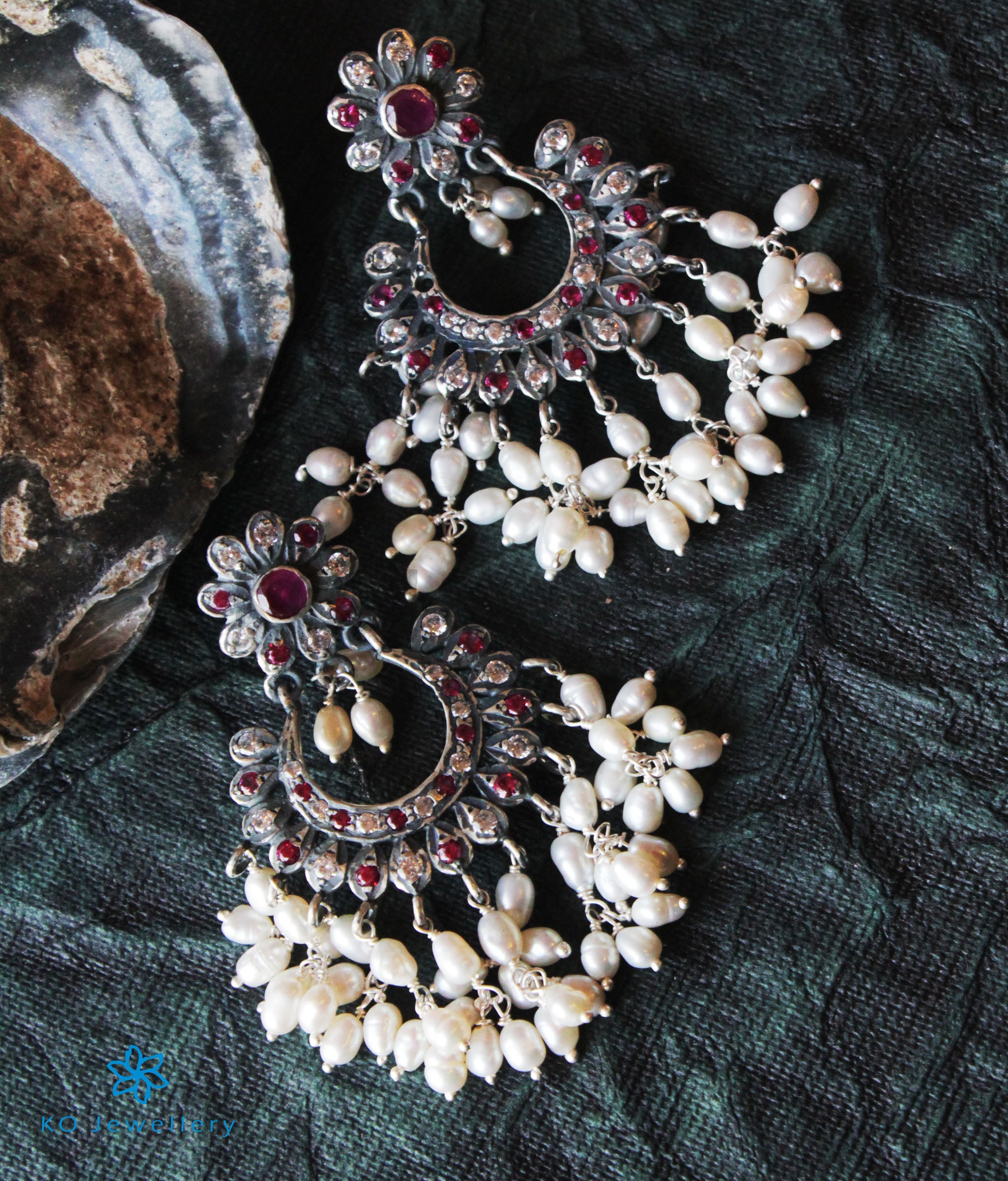 The Kankana Silver Earrings Oxidised (Red/White/Oxidised)