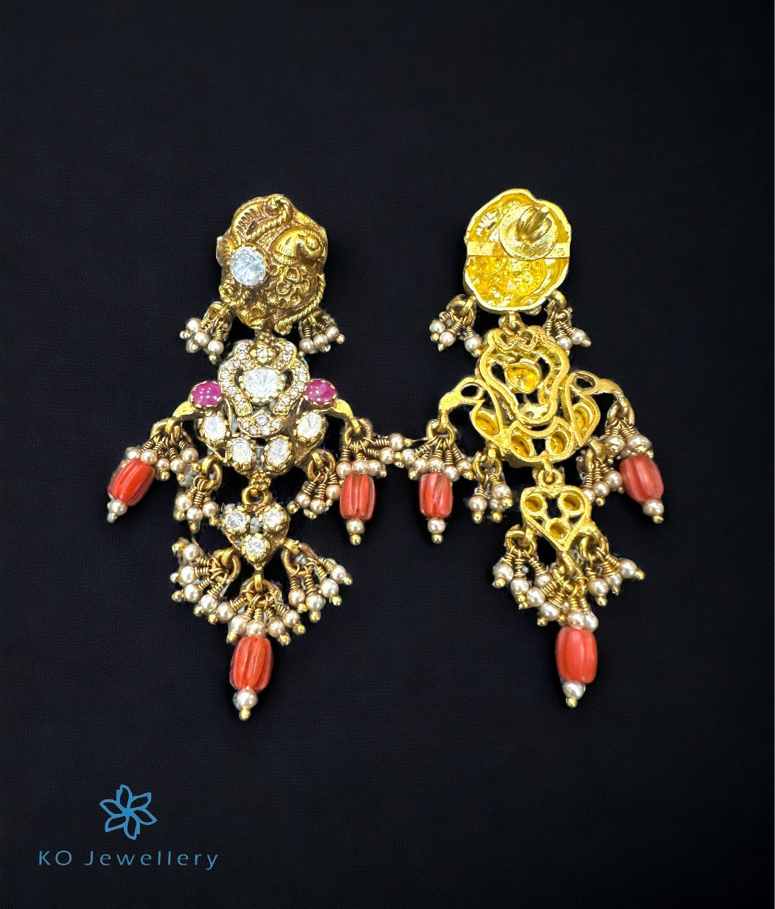 Bespoke and attractive these peacock motif, gold-dipped sterling silver (92.5%) statement earrings will brighten up any outfit. The contemporary design and colour means that you can pair these earrings with western and Indian outfits. The earrings come with a screw-back (or bombay-screw) closure.