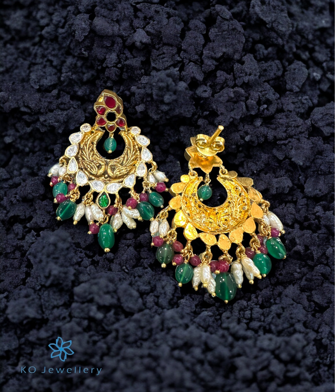 Bespoke and attractive these chandbali design , gold-dipped sterling silver (92.5%) statement earrings will brighten up any outfit. The contemporary design and colour means that you can pair these earrings with western and Indian outfits. The earrings come with a push back closure.