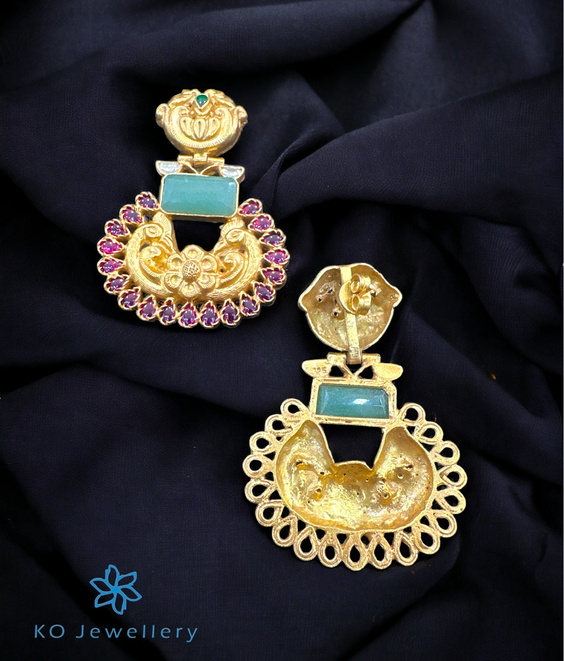 Statement earrings that are sure to be conversation pieces; these peacock motif earrings are handcrafted in Sterling silver (92.5%) using the ancient kundan jadau technique. Pair them with your traditional outfits, or style them with your indo- western outfits they look stunning. The earrings come with a push back closure .