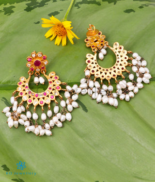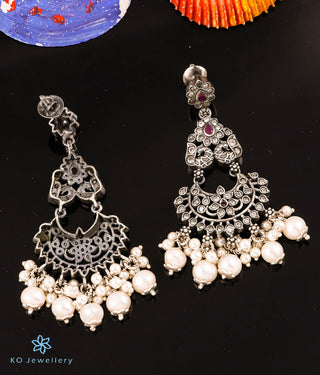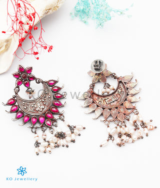 The Padmakshi Antique Silver Chand Bali(Pearl)