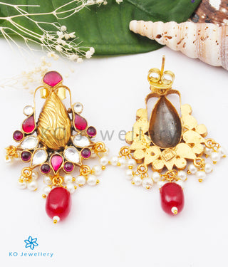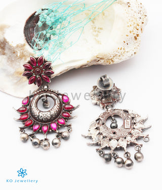 The Kankana Silver Earrings Oxidised (Red/White/Oxidised)