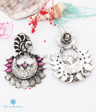 The Aradhita Silver Peacock Chand Bali Earrings(Oxidised)