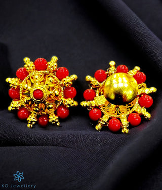 The Lakshita Silver Ear-studs (Coral)