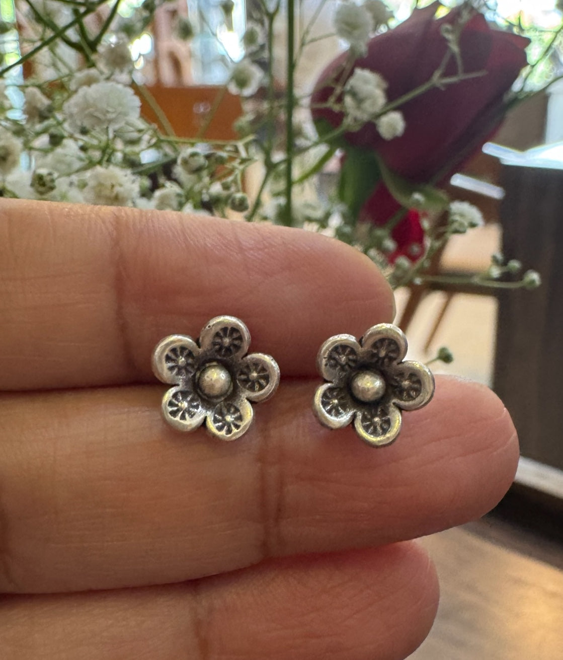 The Periwinkle Silver Flower Earstuds