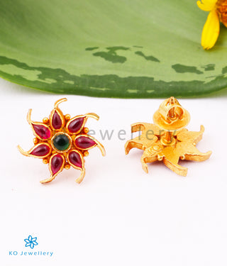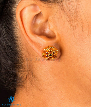 The Pauspa Silver Kempu Ear-Studs (Red/Green)