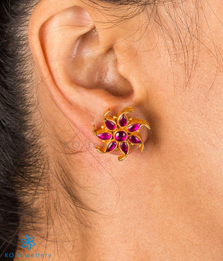 The Pauspa Silver Kempu Ear-Studs (Red)