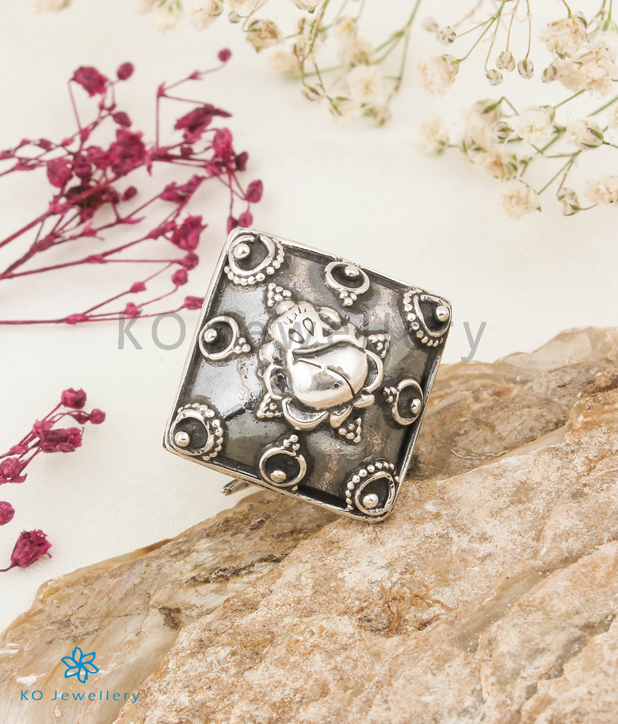 A antique finger ring handmade from Sterling Silver (92.5%) with the image of Lord Ganesha at its center this design goes perfectly with casual or traditional Indian outfits. This is an Open, free-size ring that is adjustable according to the size of your finger.