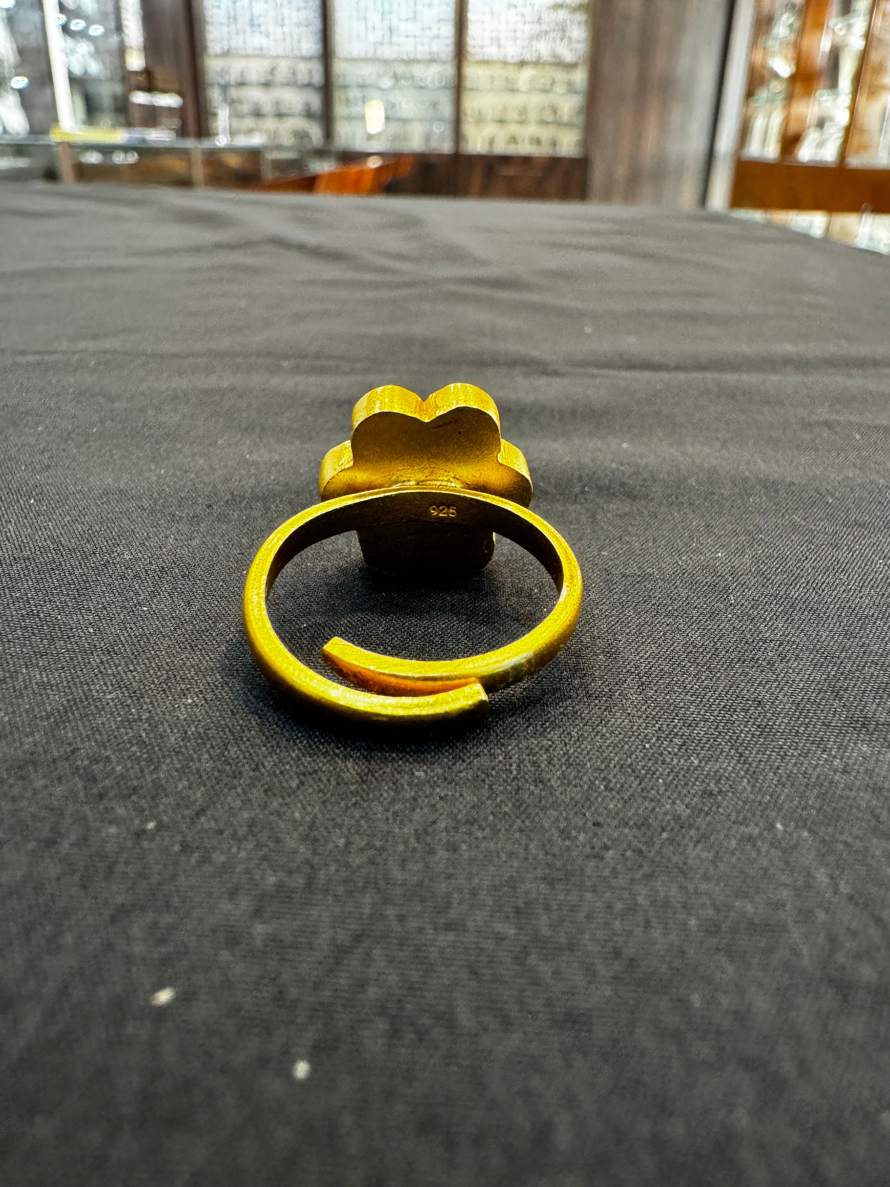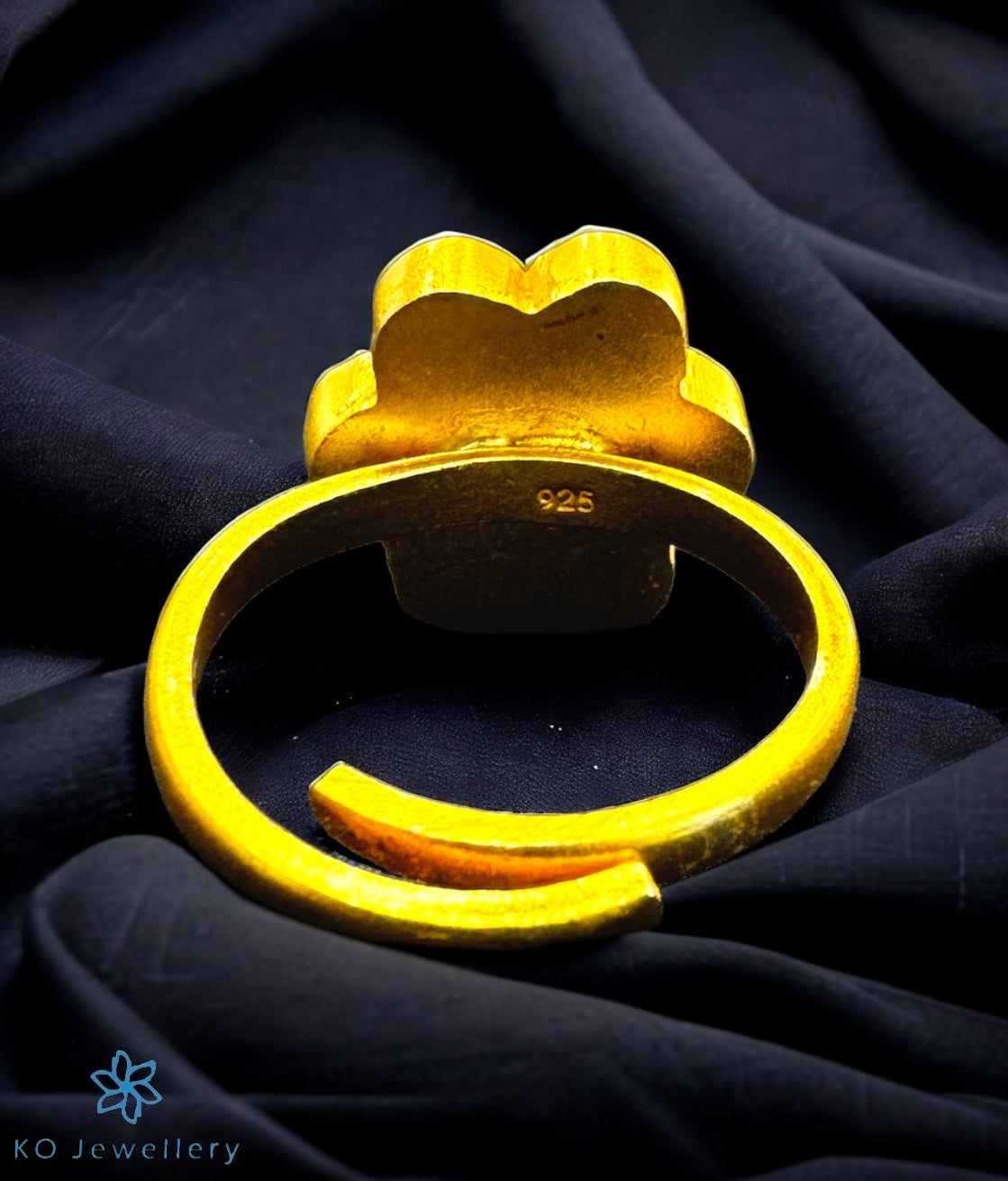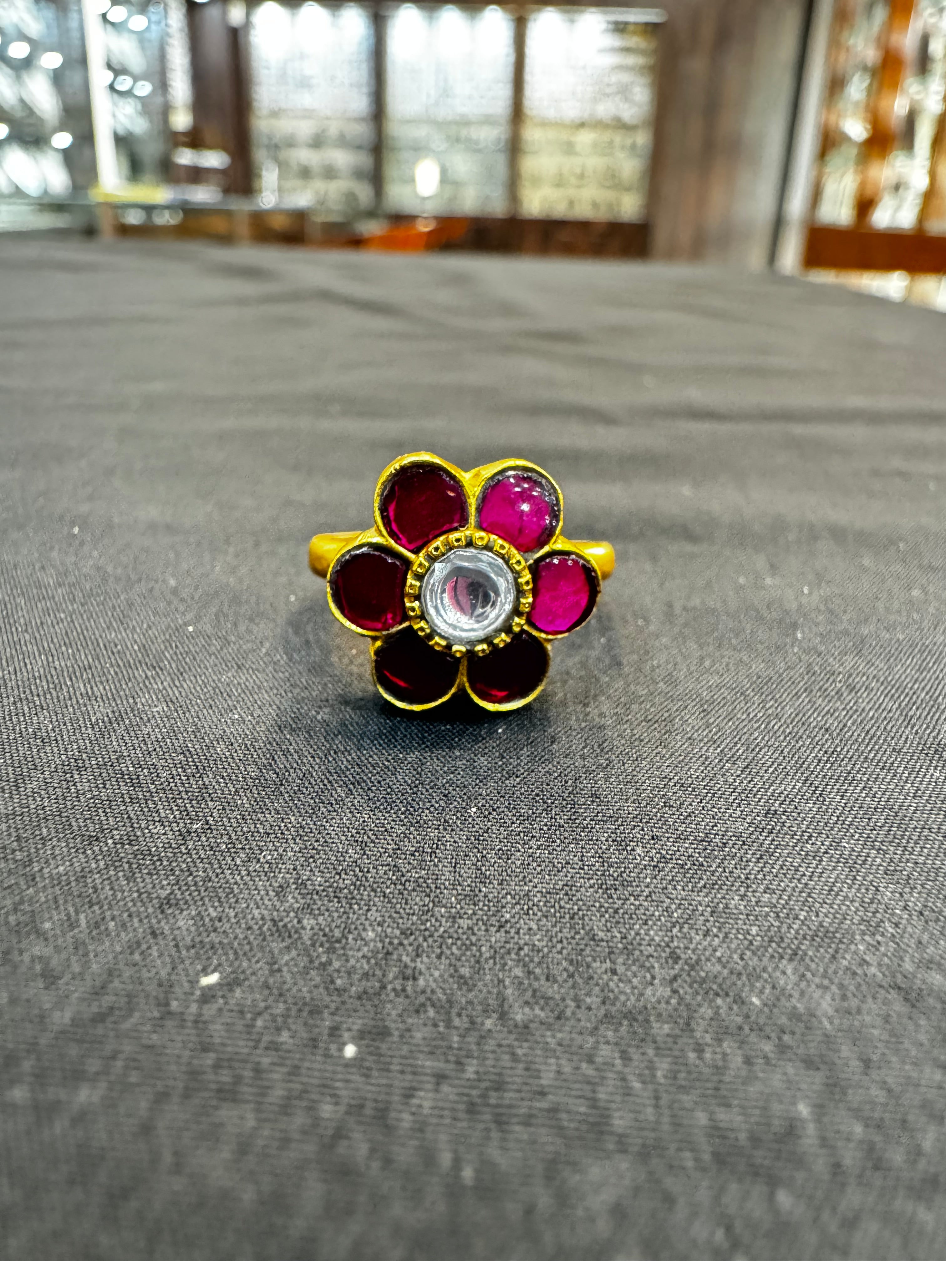 An exquisite finger ring handmade from Sterling Silver (92.5%) and decorated with polki stones this is a fun, colorful design that goes perfectly with casual or traditional Indian outfits. This is an Open, free-size ring that is adjustable according to the size of your finger.