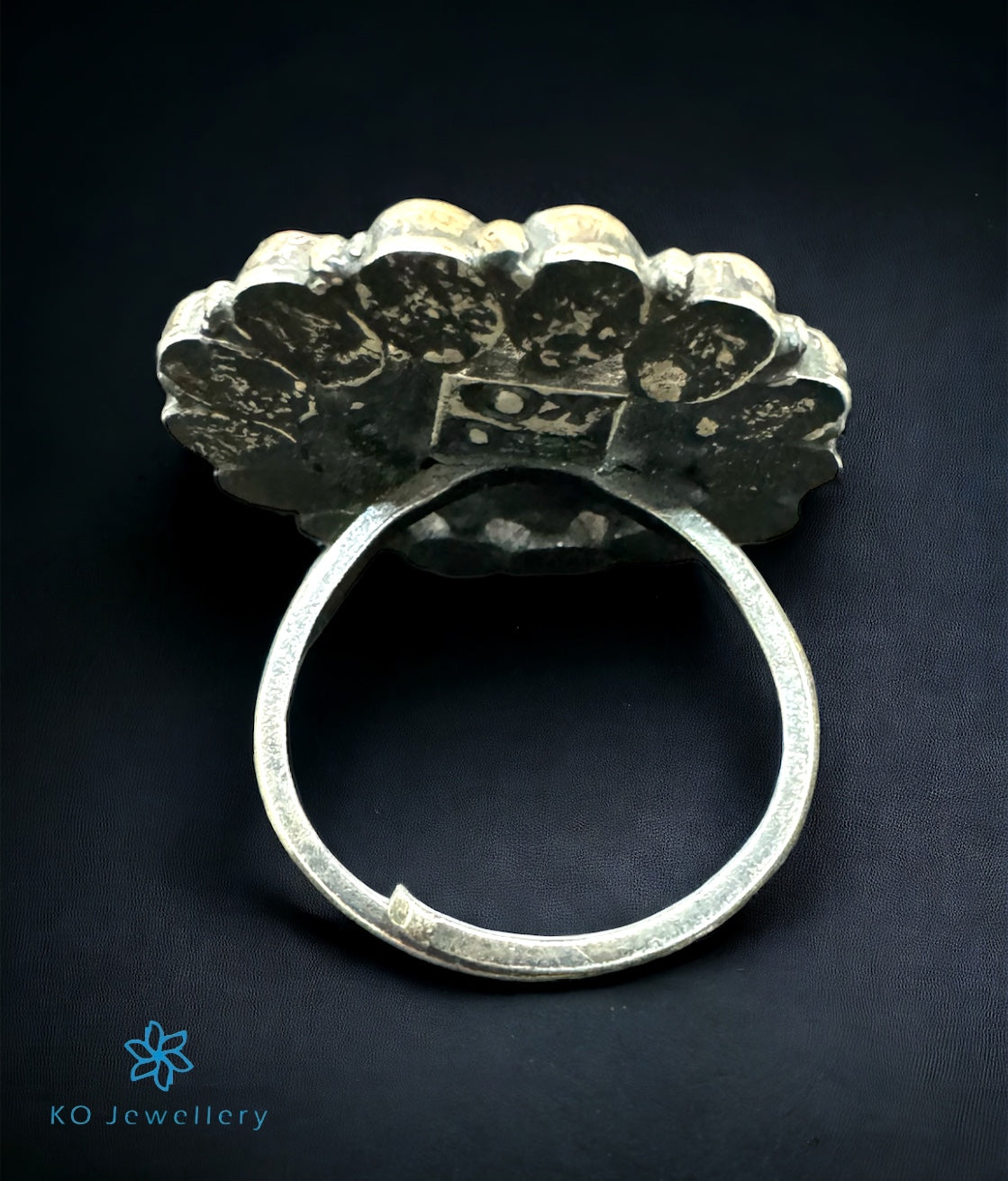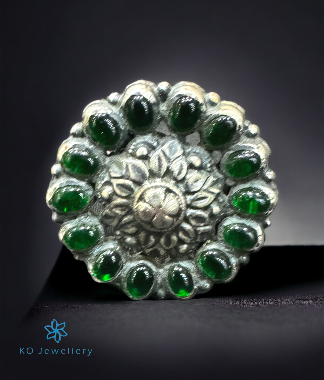 Let your fingers do all the talking with this gorgeous green finger ring . This Sterling Silver (92.5%) finger ring fuses floral design with kemp stones and it is adjustable according to the size of your finger.