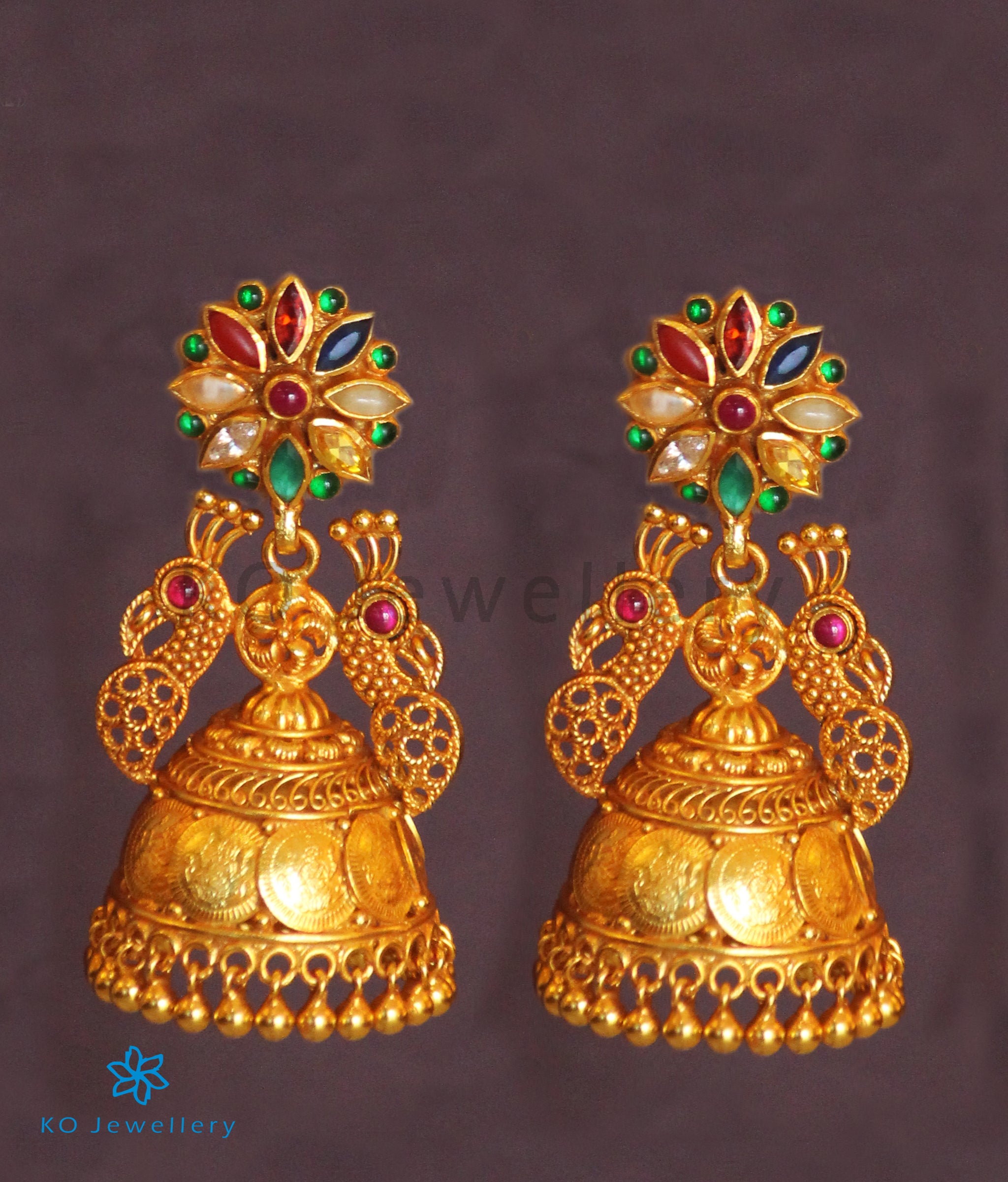 The Chandrika Silver Peacock Coin Jhumka (Navratna)