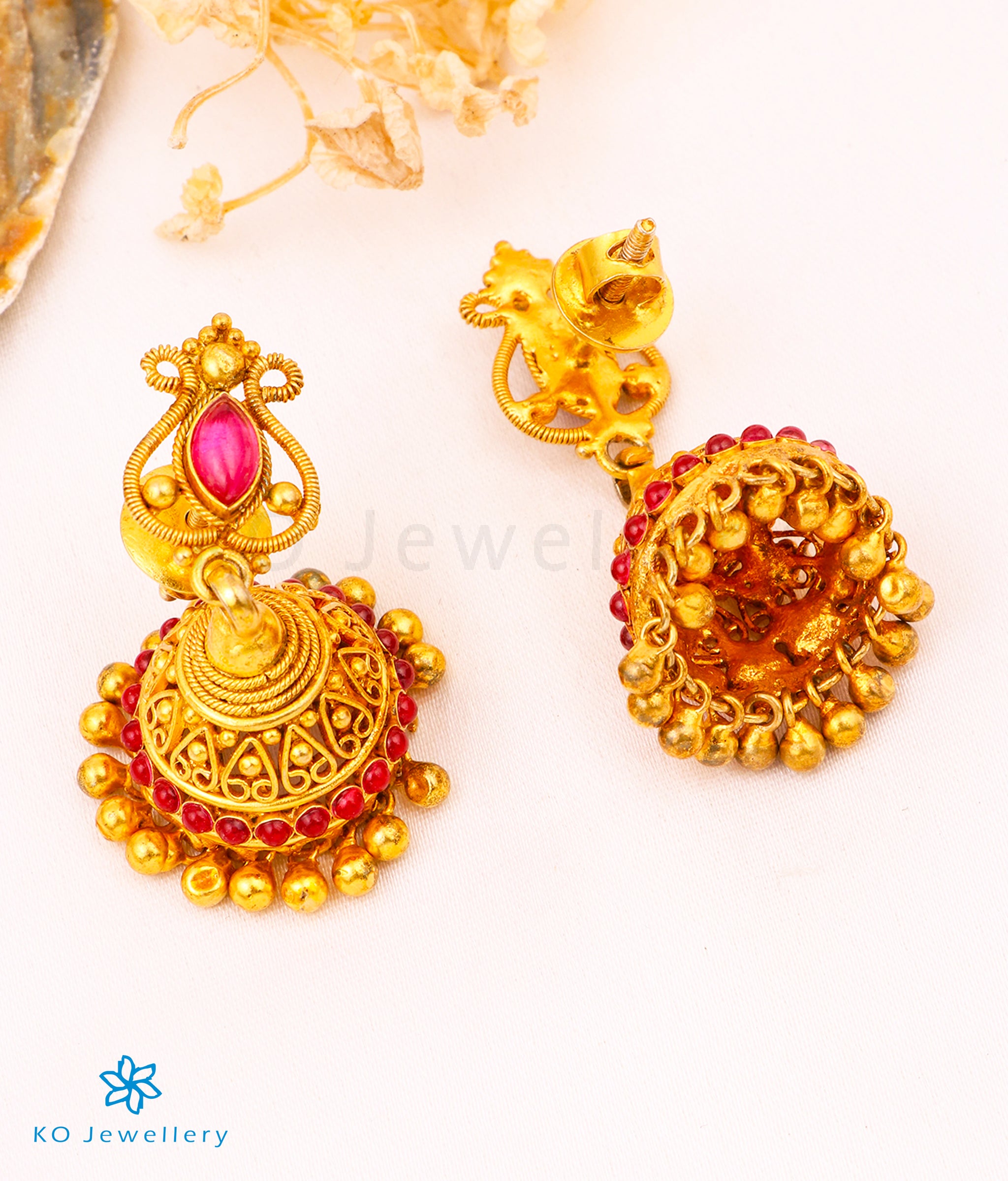 The Kaashvi Silver Kempu Jhumka- buy temple jewellery jhumkas online - KO Jewellery
