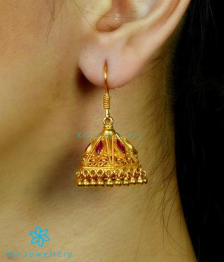 Temple jewellery jhumkas, kemp jhumkas, meenakari jhumkas, jaipur jhumkas, jadau-kundan jhumkas - choose from our gorgeous jhumkas handcrafted in Pure Sterling Silver (92.5%) in all sizes and different finishes like 2 tone, gold-dipped ,oxidised or antique.
