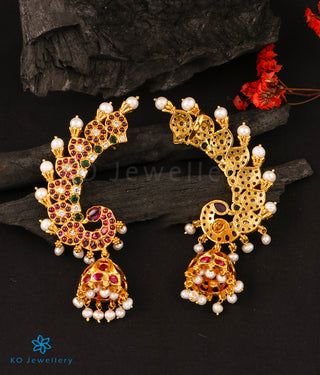The Atyuha Silver Peacock EarCuff Jhumka