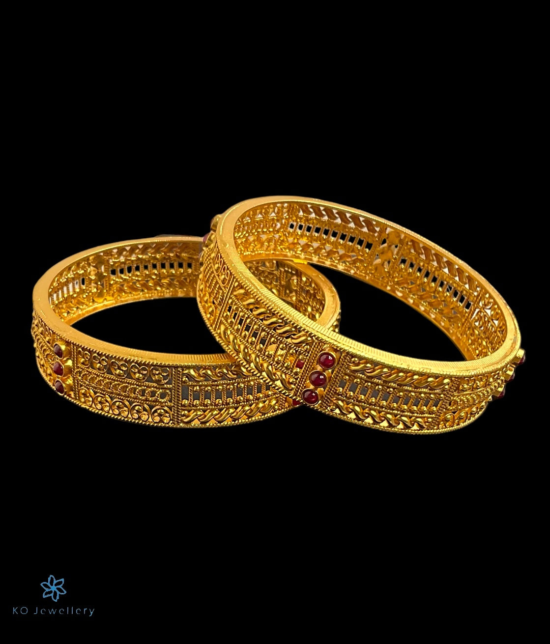 The Aditi Silver Filigree Bangle-Single (Red/Size/2.2/2.4/2.6/2.8)