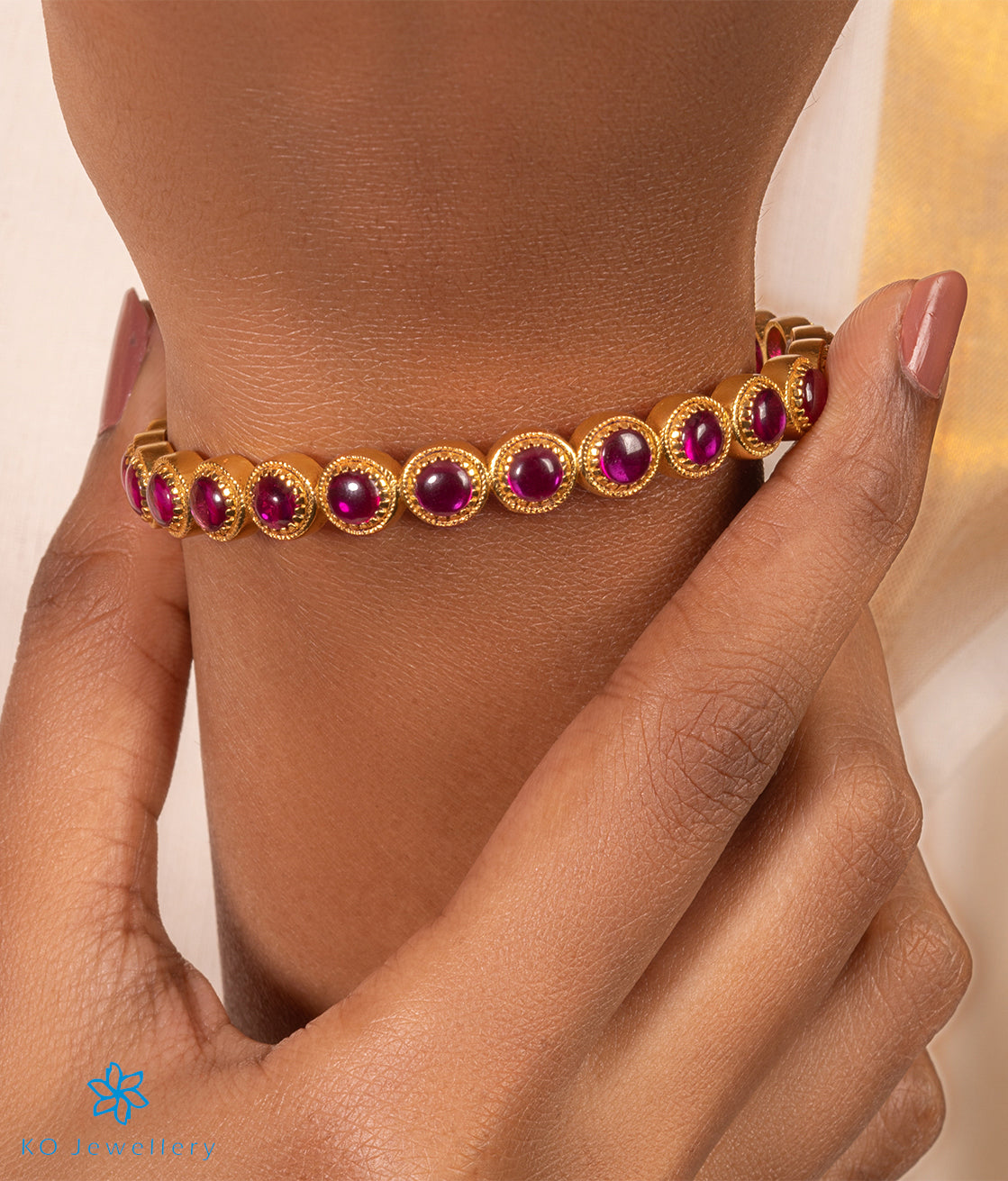 A subtle yet striking piece, this bangle adds just the right touch of tradition and color to your jewelry collection.