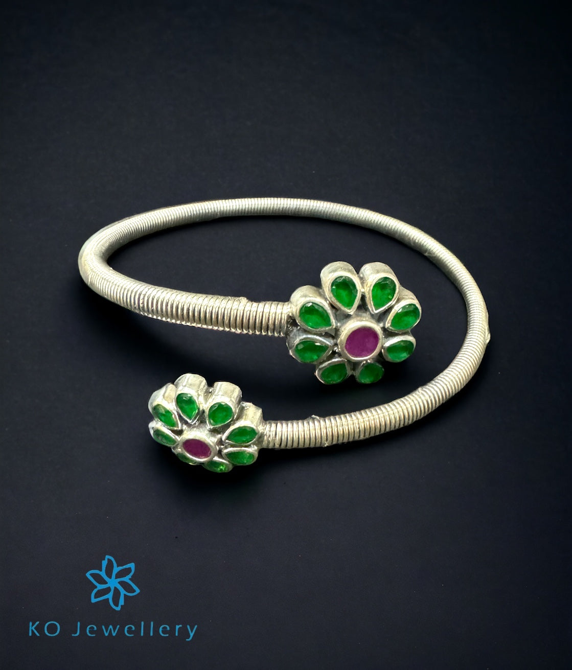 Gorgeous handcrafted Kada with a floral design, this piece is made in Pure Sterling Silver (92.5%) . This light, open bracelet comes in a free size, and will add tons of grace and allure to your look.