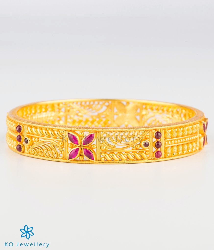The Mithila Silver Kempu Bangle- Single (Size/2.2/2.4/2.6/2.8)-Buy Temple Jewellery Bangles Online - KO Jewellery