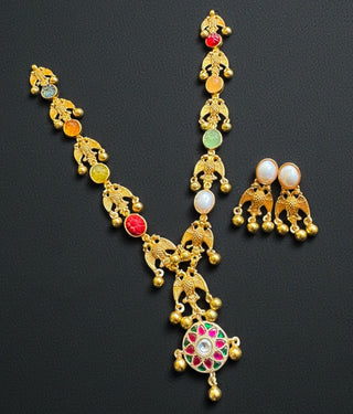 Silver and gold plated necklace sets with paired ear rings, haaras, kasu malas, dolki bead necklaces, manga-malai. Explore many more beautiful jewellery options.