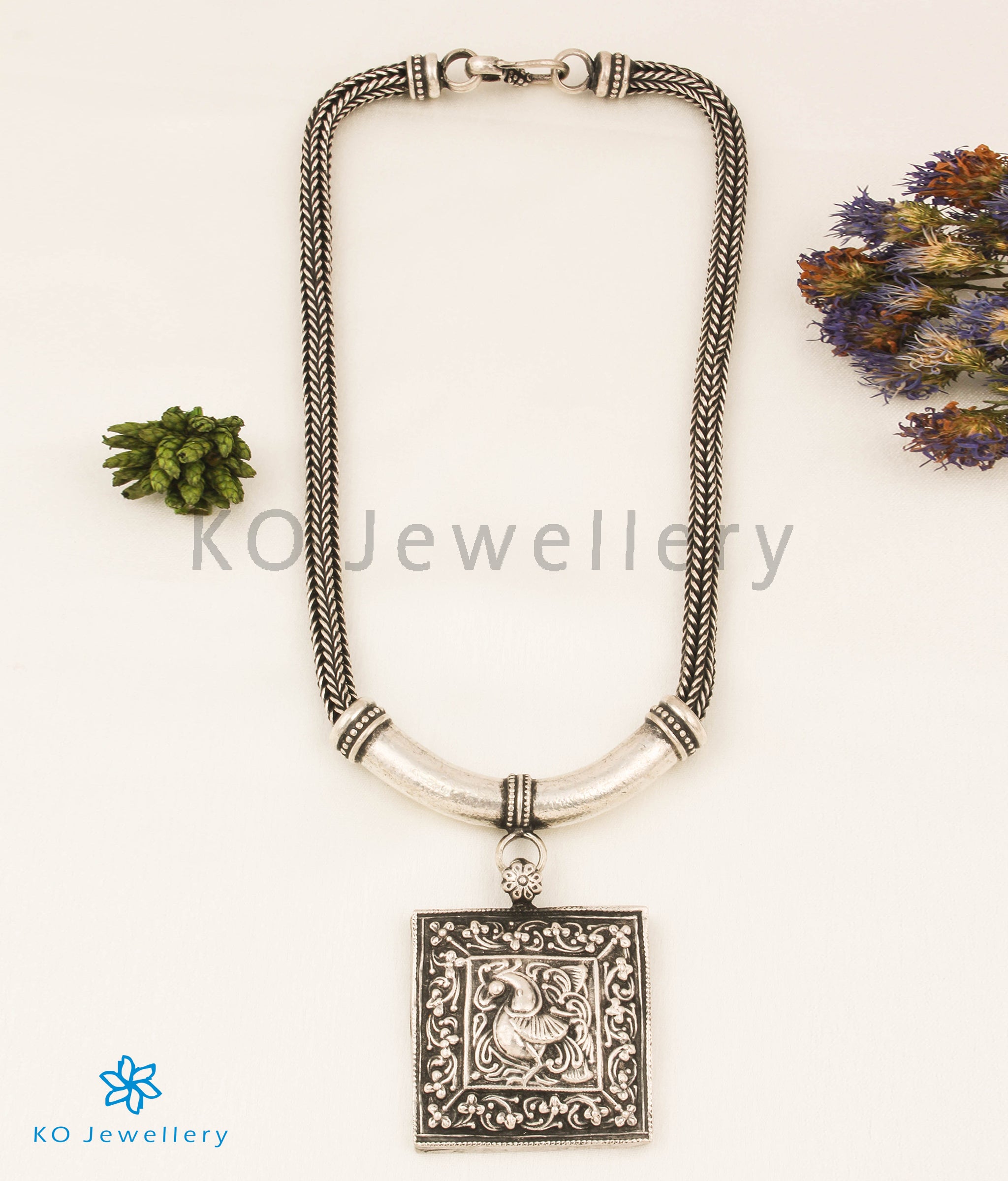 The Ahidvis Silver Peacock Necklace - Buy Antique Silver Jewellery online - KO Jewellery