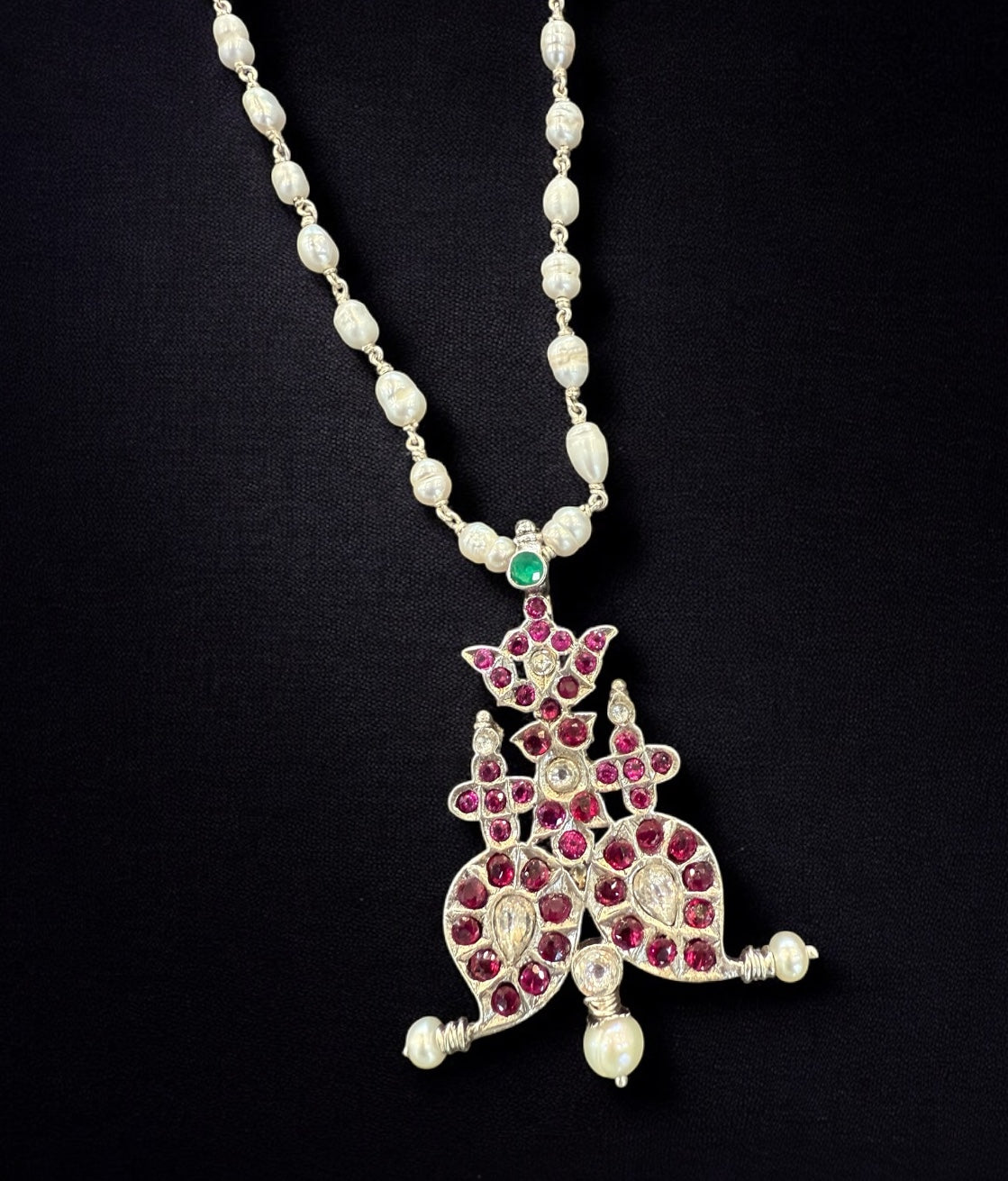 Kemp Mango / Paisley Necklace with Pearl String — 92.5 Silver, Handcrafted