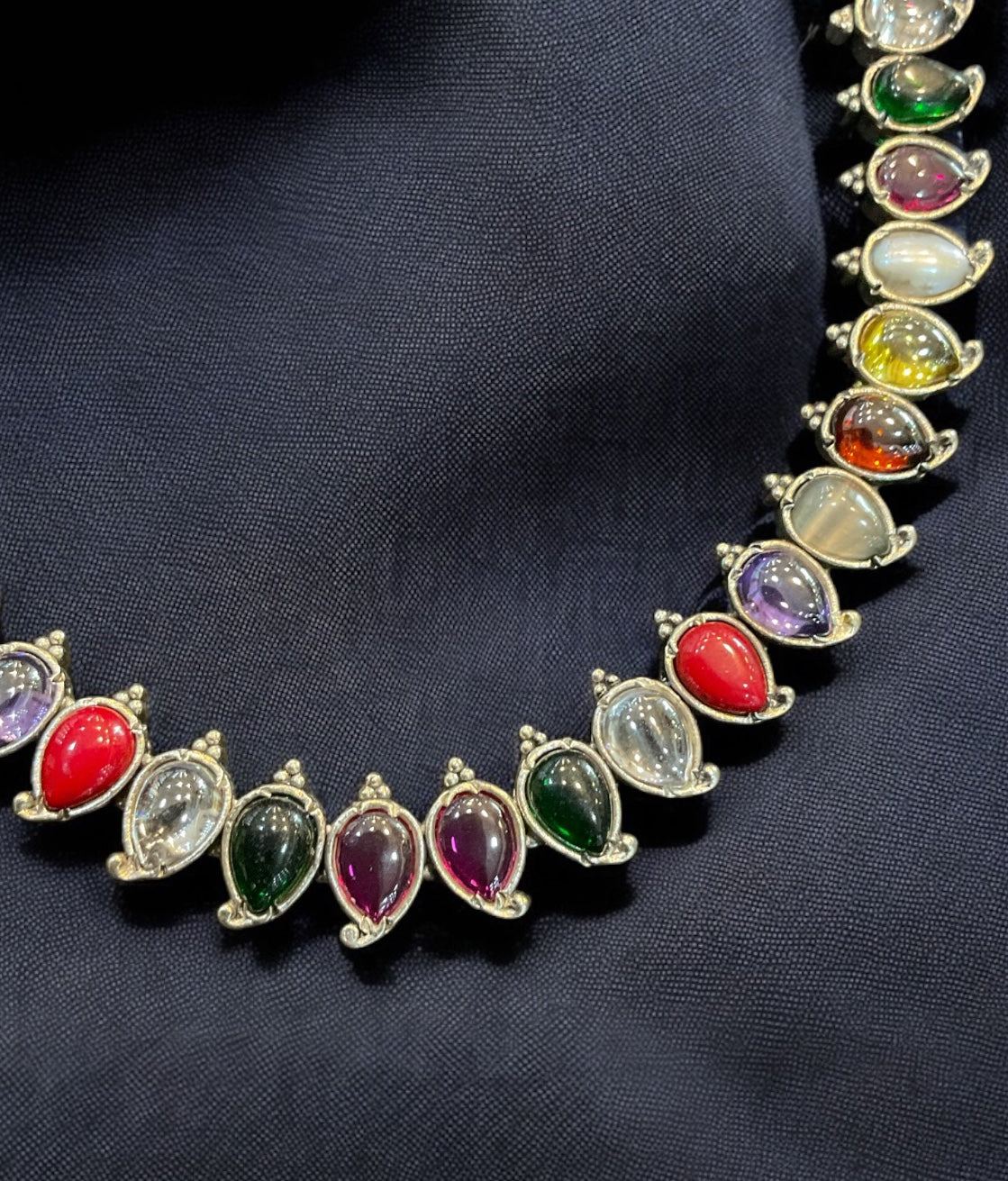 The Aru Silver Navratna Necklace (Oxidised)